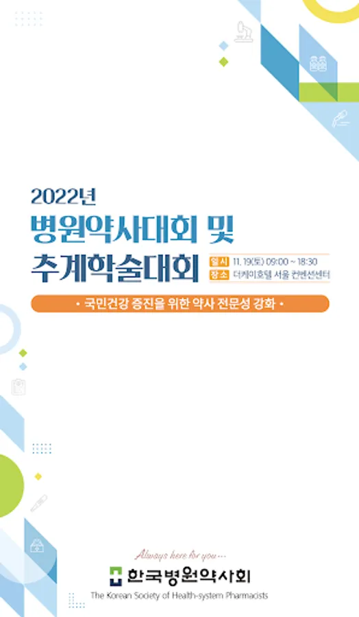 ▶ The mobile app service is available only to members who have applied for paid participation in the 2022 Korea Hospital Pharmacy Association Autumn Conference.