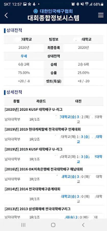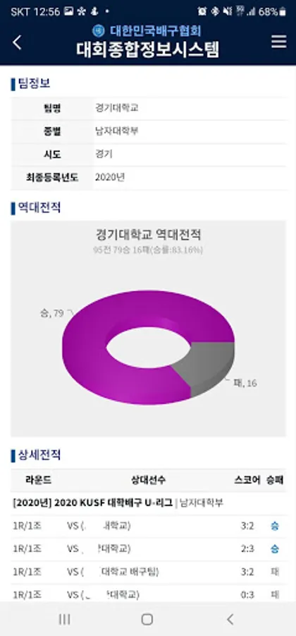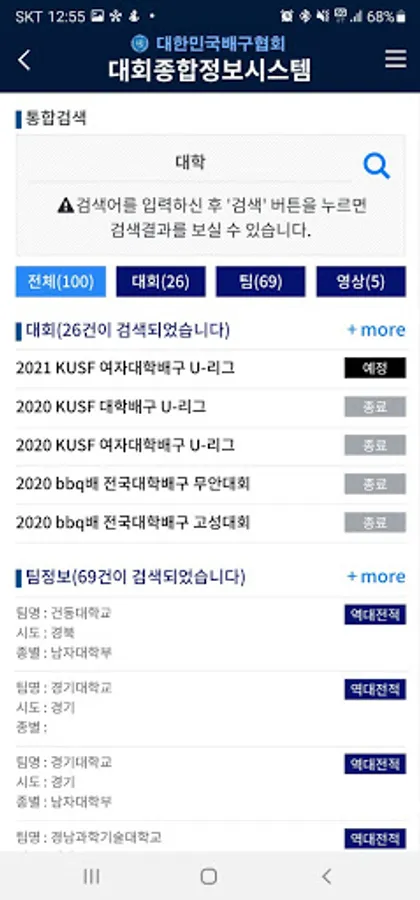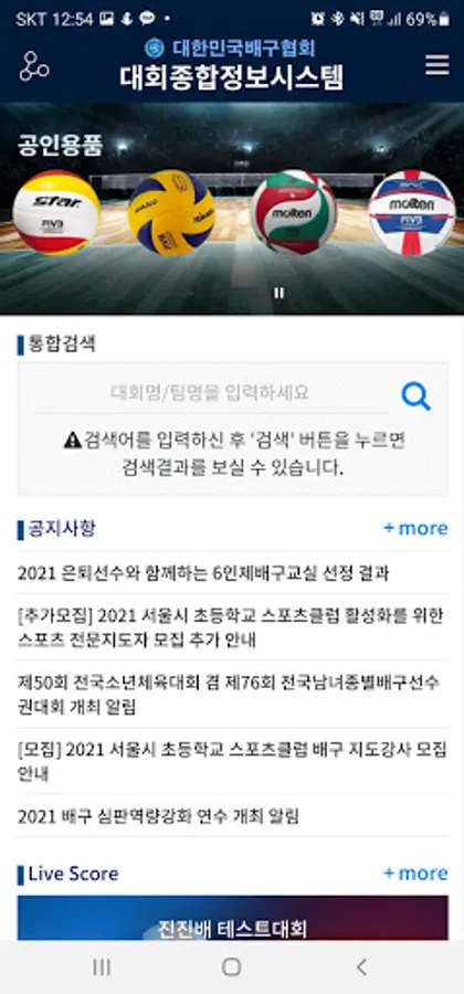 It provides systematic information such as an overview of the competition organized by the Korea Volleyball Association and its affiliated organizations, match results, draws, and past records, and makes it easy to participate in the competition through online participation in the daily sports competition based on the information registered at the Korea Sports Association. You can easily prove the player's qualifications by providing convenience and replacing the membership card provided in the form of an existing magnetic card with a mobile QR membership card.