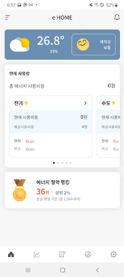 The LH e-Um home energy application is being serviced to effectively provide energy consumption, cost, and reduction methods to apartment occupants hosted and managed by LH Korea Land and Housing Corporation. It is a service that anyone in the LH family can participate in in saving a livable environment and the earth through energy saving.