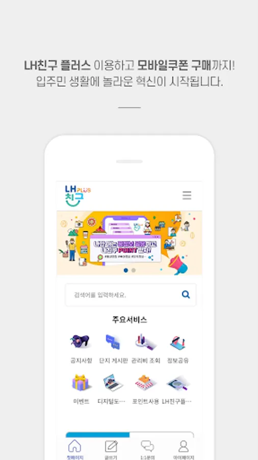 You can check information and communities on our complex, residential services, useful sites, etc. for residents of rental housing built and managed by LH Corporation on the My Friend Plus app.