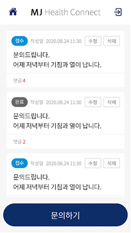 Function: A system in which the person in charge of the Virtual Care Center of Myongji Hospital answers online when a user who wants a remote interview service leaves an inquiry.