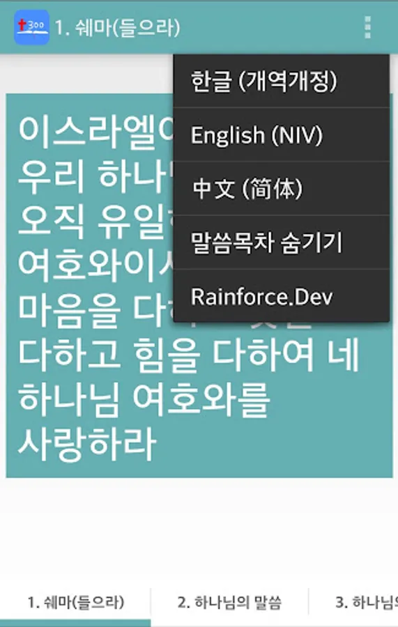 3. Press the menu button and you will see English (NIV) and Chinese (Simplified).
