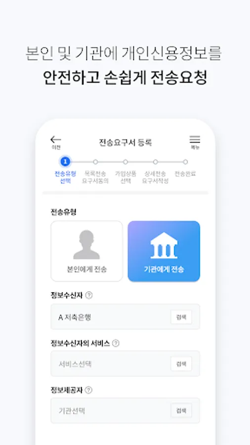 ② [Transmission to Institution] The information subject requests the information provider to transmit his/her personal credit information to an organization (information recipient) other than the My Data service provider