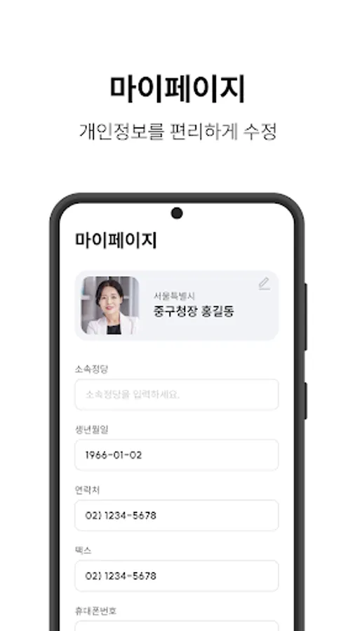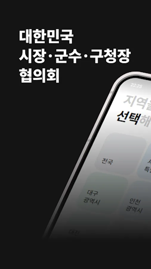 It provides information such as the introduction of the co-chairs of the Korea Mayor/Gun/Gu Heads Association, photos and biographical information of regional heads of local governments, contact information for the Secretariat of the Council, and contact information for related organizations.