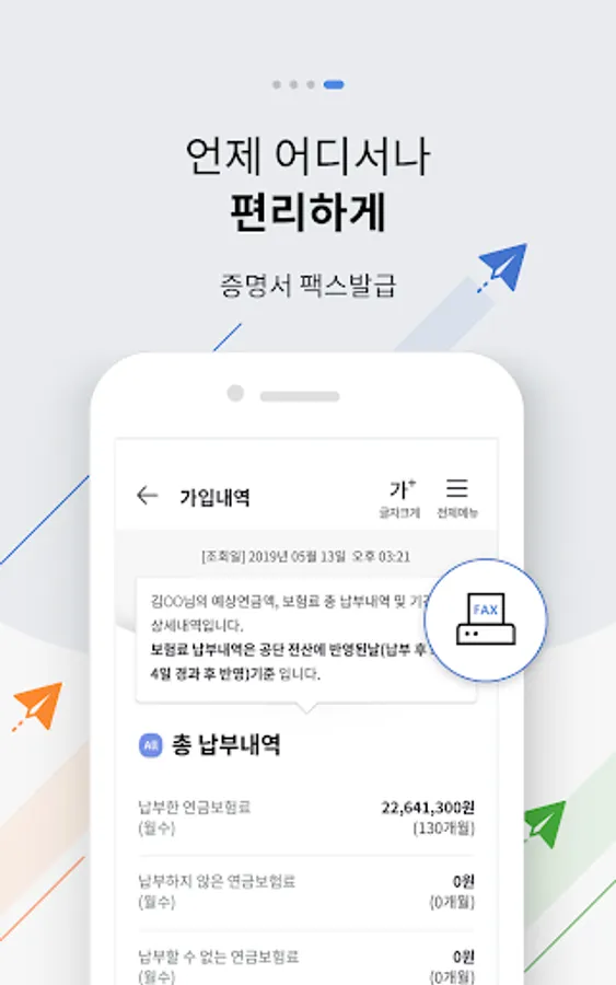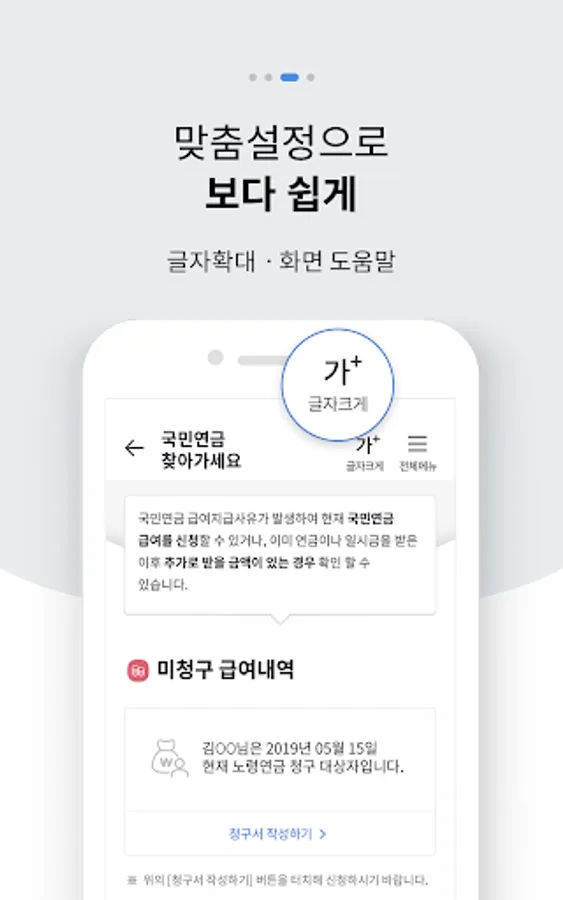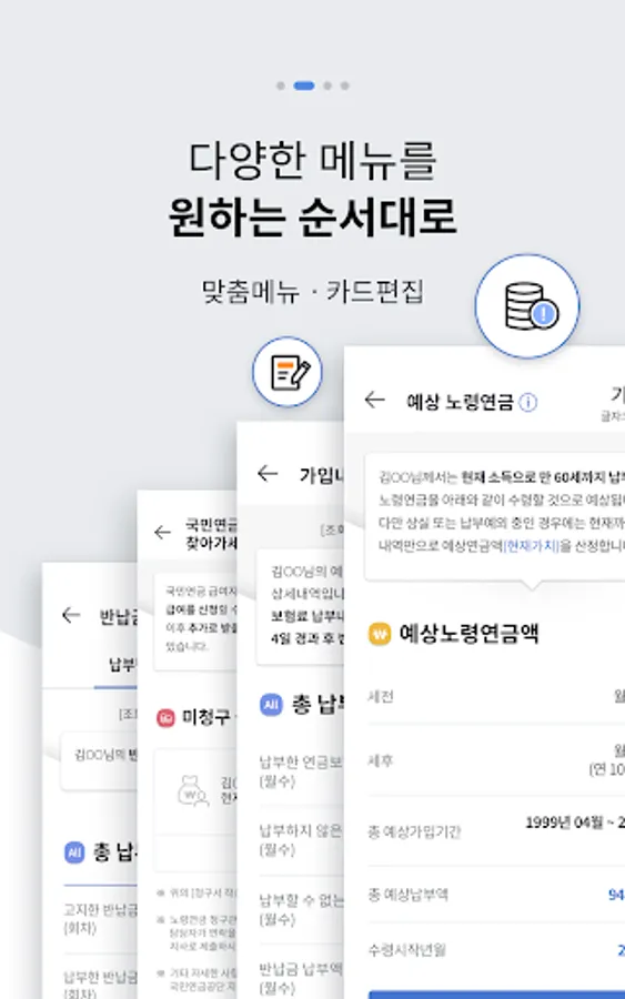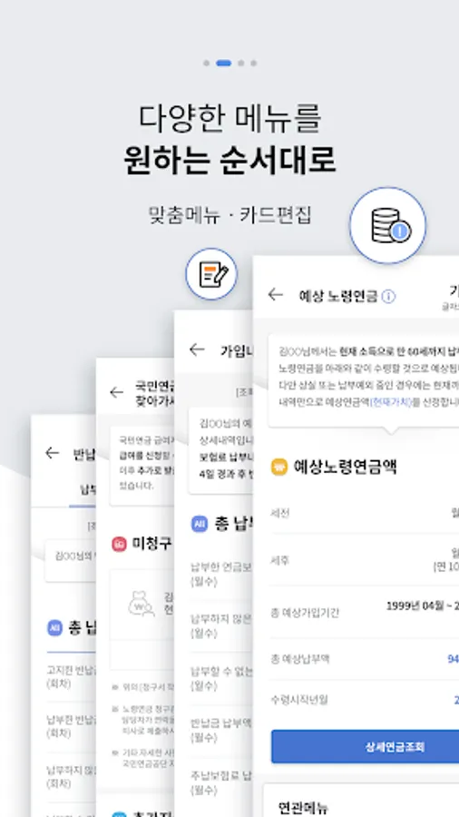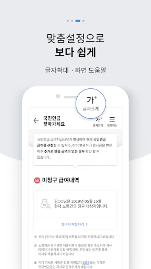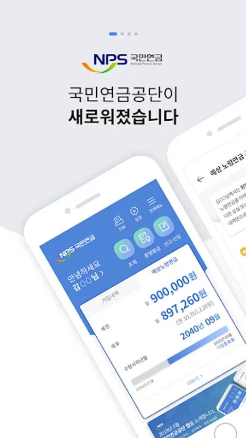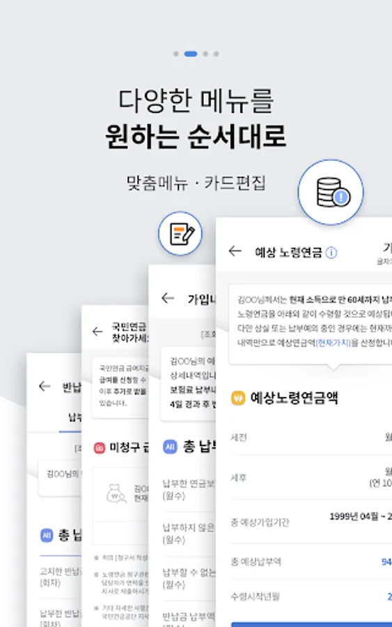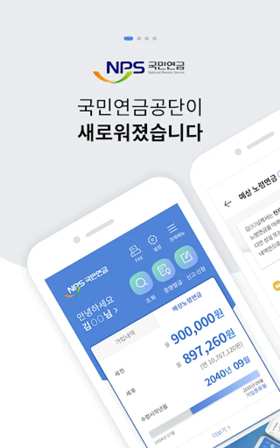 The National Pension Service's mobile app service, "National Pension by My Side," is designed to provide the main civil service services of minwon.or.kr, the civil service website, easily and quickly in a mobile environment.
