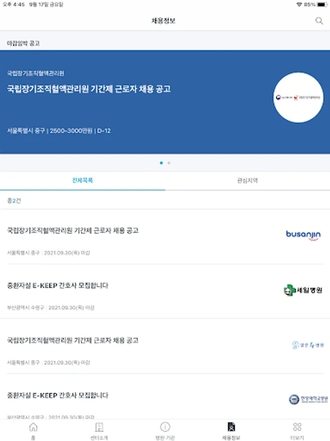 - Through the hospital/company information registered in RNJOB, you can check the hospital/company information located in the area to which you belong.