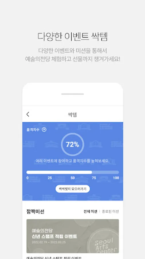 You can experience the Seoul Arts Center richly through the Seoul Arts Center's Art Season Calendar function and the 'Ssakssak' badge.