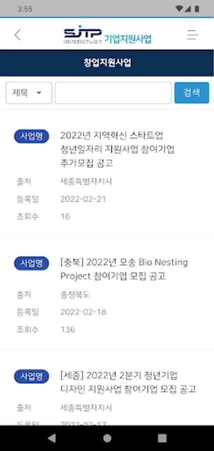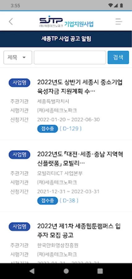 - Search for supported projects: View information on projects supported by Sejong Techno Park