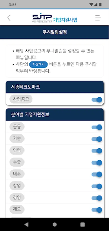 - If you set a push setting for an area of interest, all information announced by Sejong TP