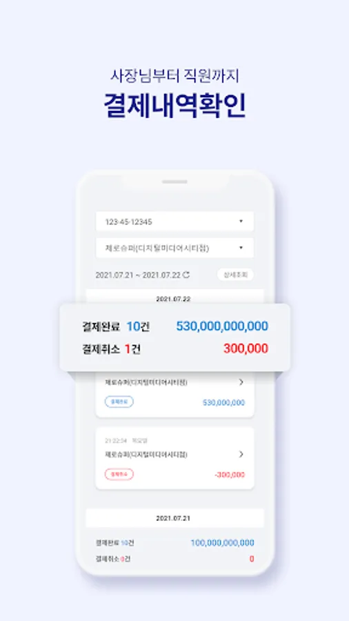 -You can check the payment of all the business places of the boss at a glance. *Limited to merchants registered with Zero Pay.