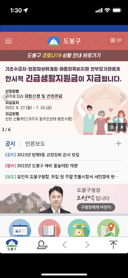 - When you come to Dobong-gu Office, you will be notified of events and major news through push and beacon.