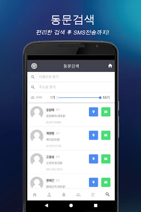 Take advantage of convenient alumni search. You can check the location of the hospital and copy contacts for sending SMS. You can easily search for alumni by searching by name, address, or radix.