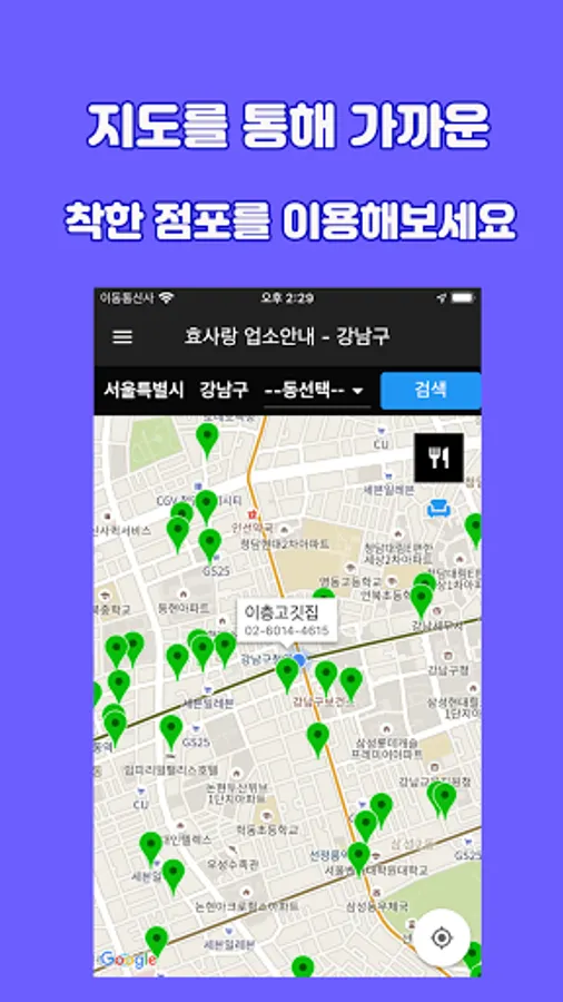We have created an app to inform you of good companies that offer 20-50% discount for seniors over 70 years of age in Gangnam-gu.