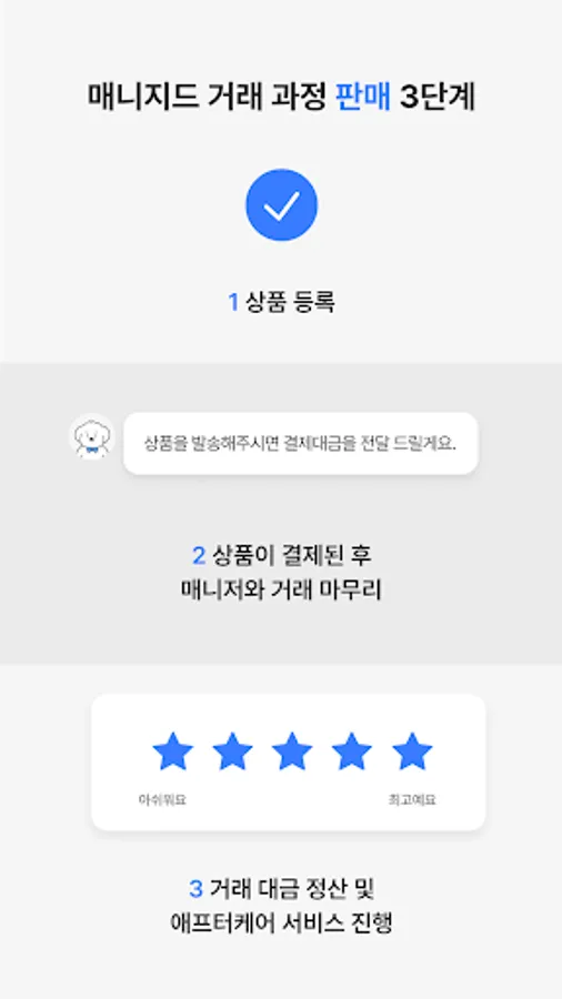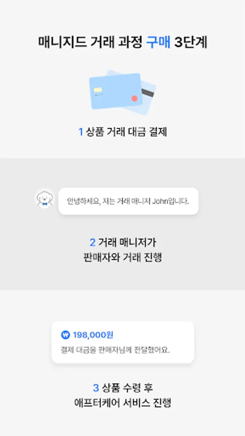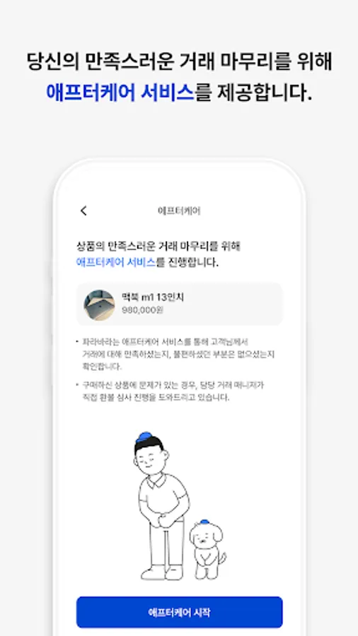 If you receive a purchased product and there is a problem, or if you are a seller and have a problem, you can receive one-on-one problem resolution from your transaction manager through our aftercare service.