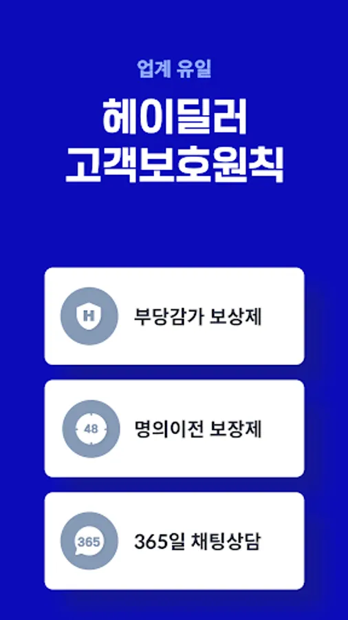 · If you have any inconvenience while using Hey Dealer, please send it to contact@heydealer.com at any time. We will listen carefully and resolve it as soon as possible.