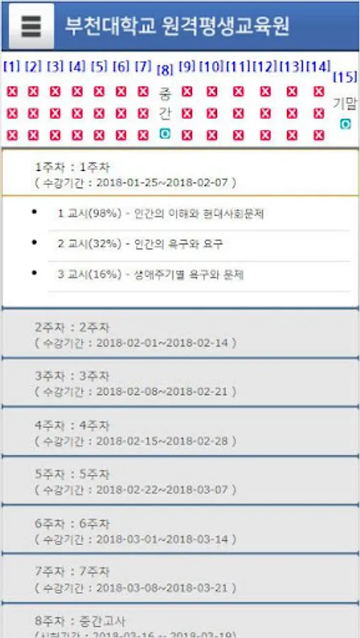 A mobile service provided by Bucheon University Distance Lifelong Education Center that is a registered bank system.