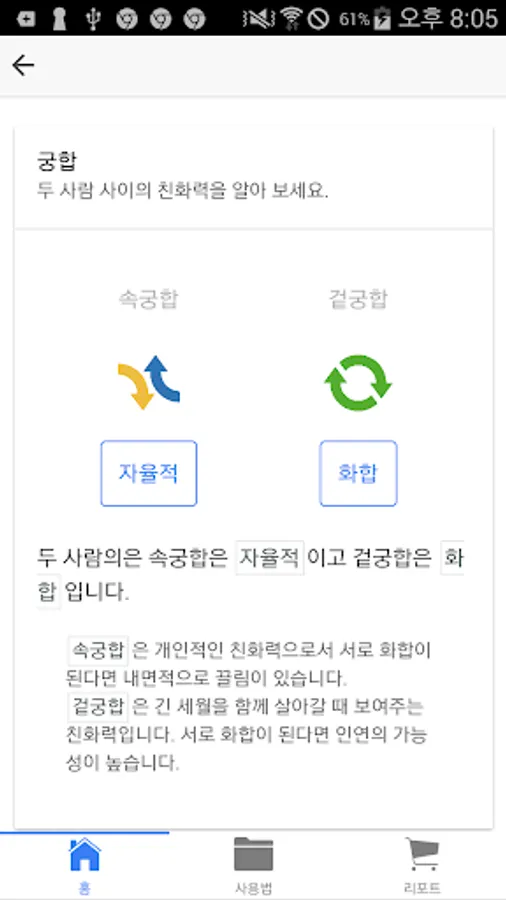 And displays the surface chemistry and sokgunghap of two people. Surface chemistry is a long-term relationship and sokgunghap is personal preference.