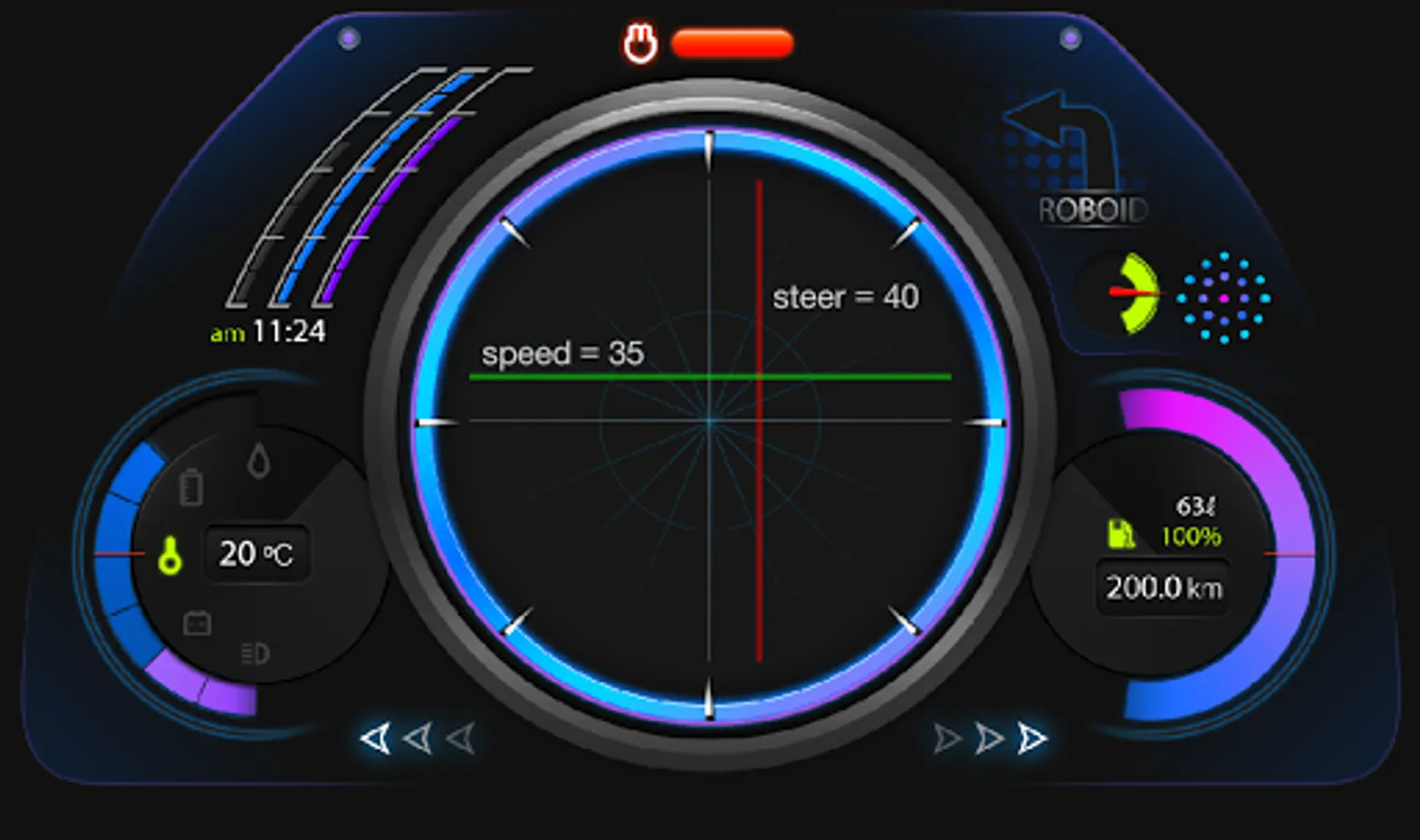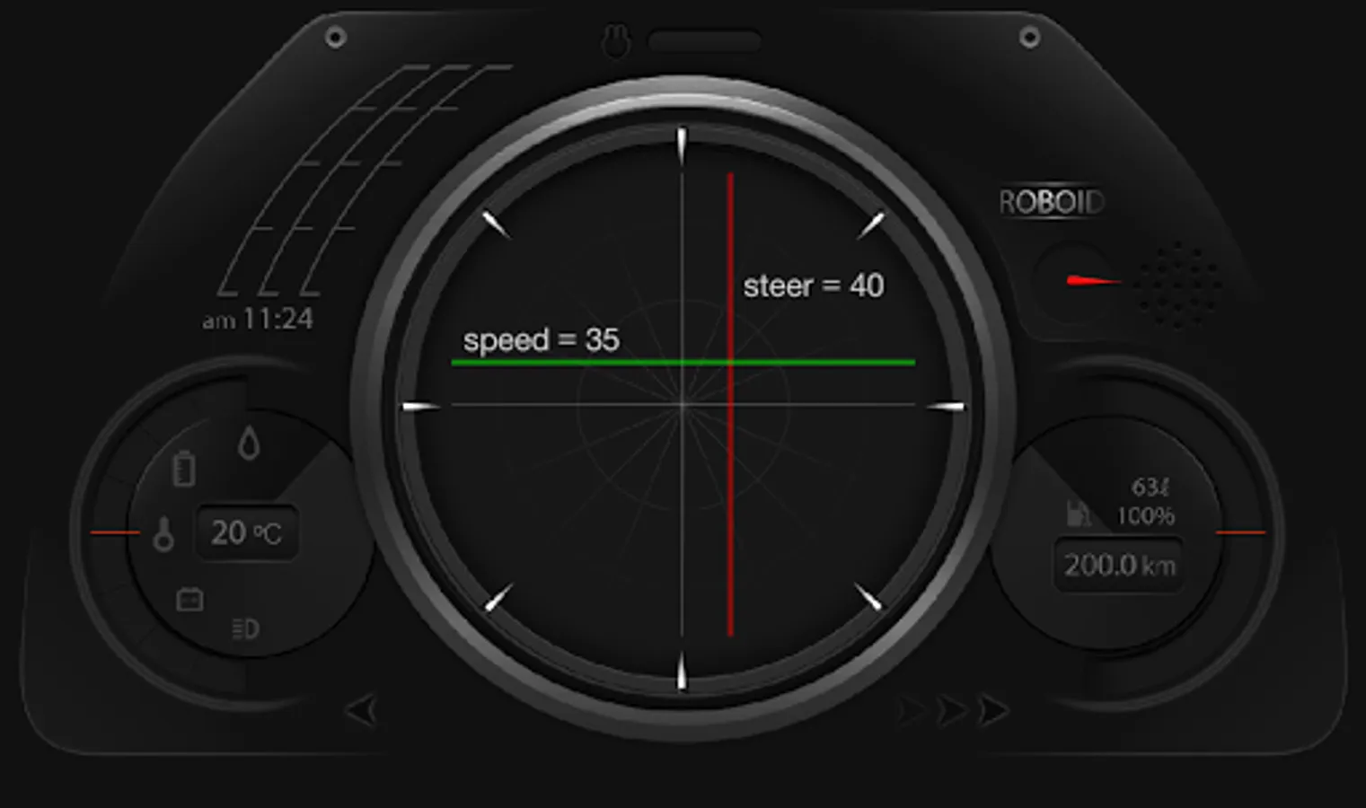 Robot will move according to the direction of tilting the smart phone back and forth and side to side while touching the screen.