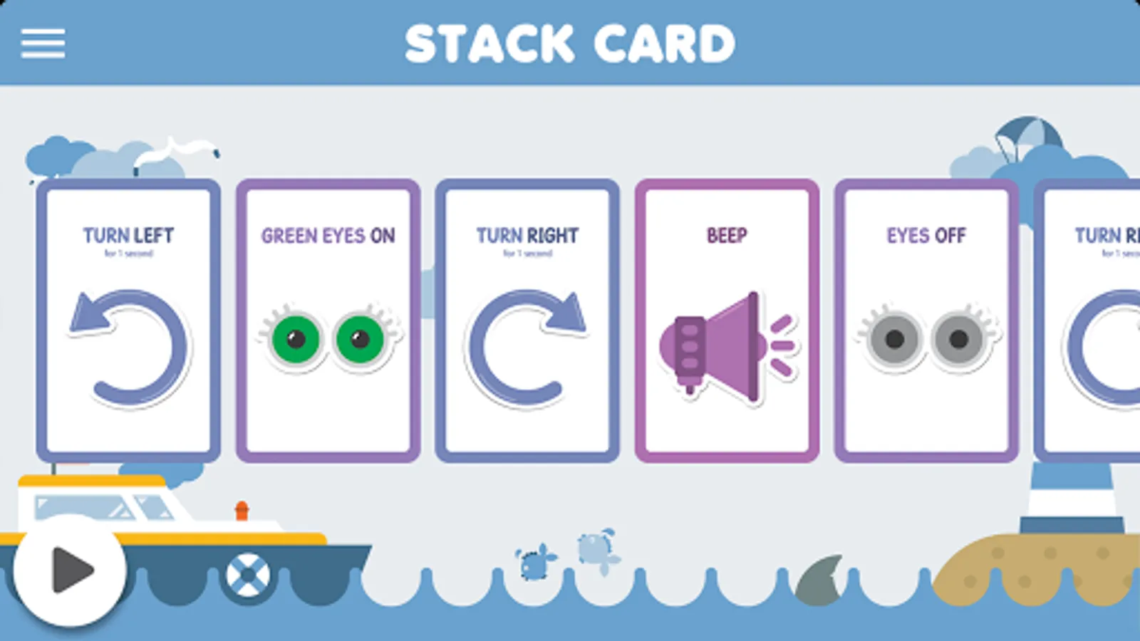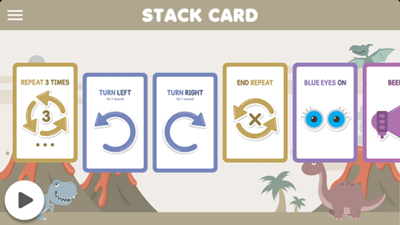 Use 20 kinds, 56 cards such as motion cards, eye color cards, say cards, beep cards, repeat cards, and wait cards.