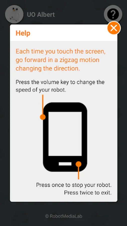 Each time you touch the screen, your robot moves swinging slightly from side to side or rotates changing the direction.