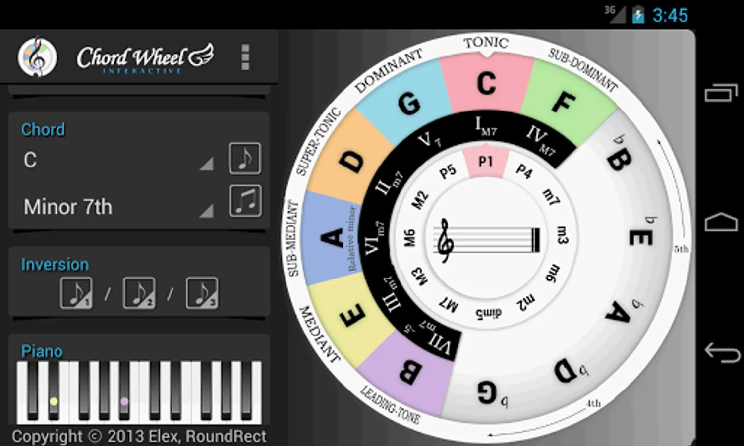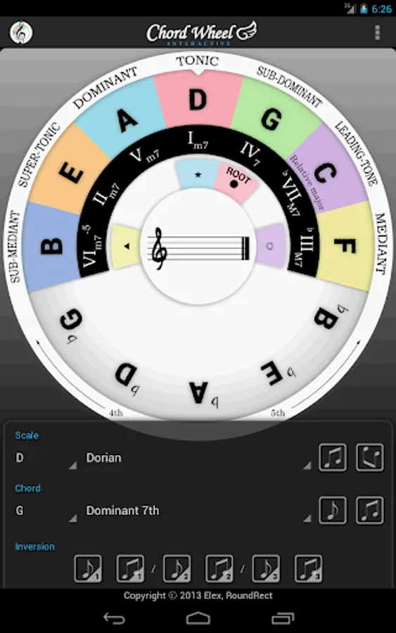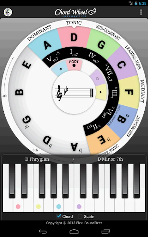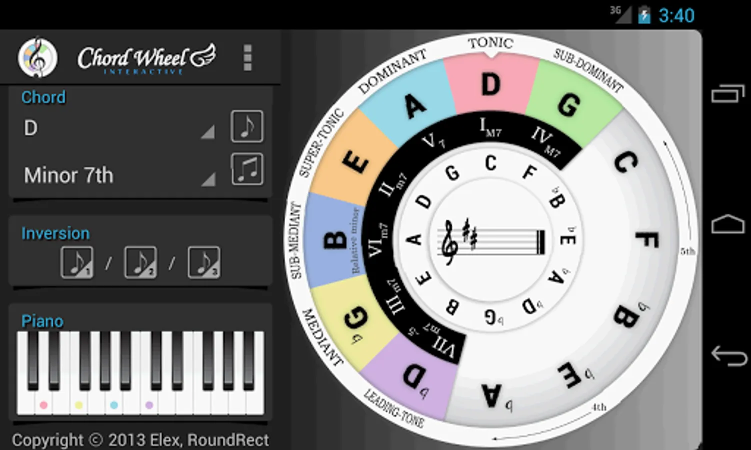 The Interactive Chord Wheel is an implementation of one of the most basic and significant music theory, 'Circle of fifths' on Android. This app is uniquely designed to represent the relationship between a scale and a chord.