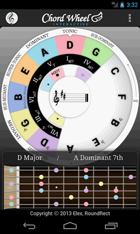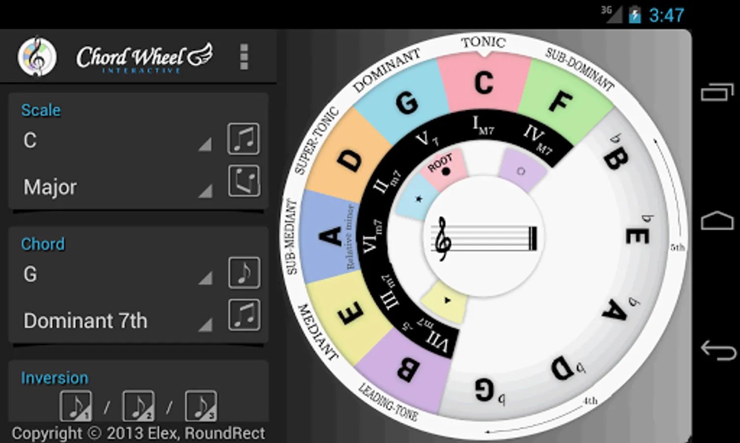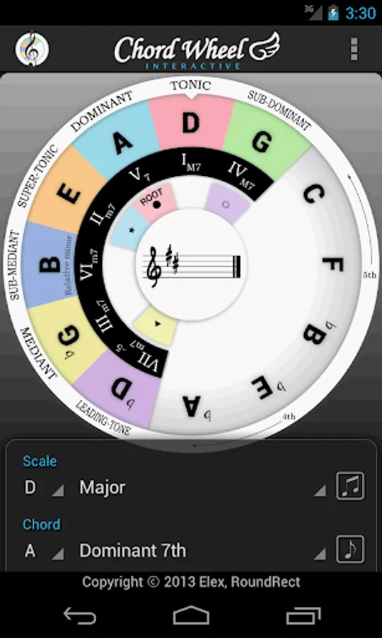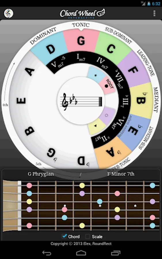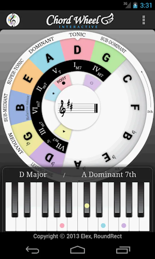 The Interactive Chord Wheel is an implementation of one of the most basic and significant music theory, 'Circle of fifths' on Android. This app is uniquely designed to represent the relationship between a scale and a chord.