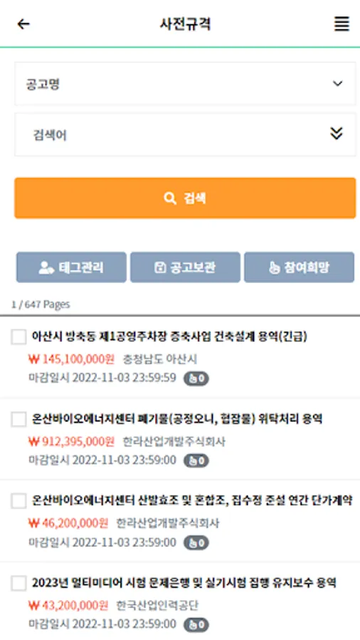 For services during the bid announcement of the Nara Market that is related to the tag registered by the user