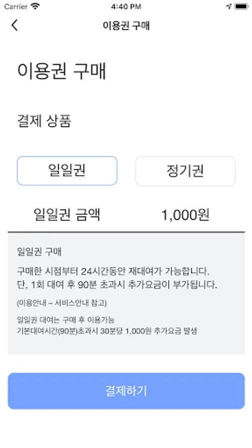 - For additional fees, the default lease time exceeded 500 won per 30 minutes (commuter), 1,000 won (one day ticket) charge