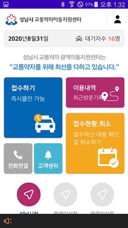 We will be a Seongnam City Transportation Support Center (Seongnam City Bus Co., Ltd. Taxi Division) that communicates and practices, asking for a lot of interest and encouragement from our users.