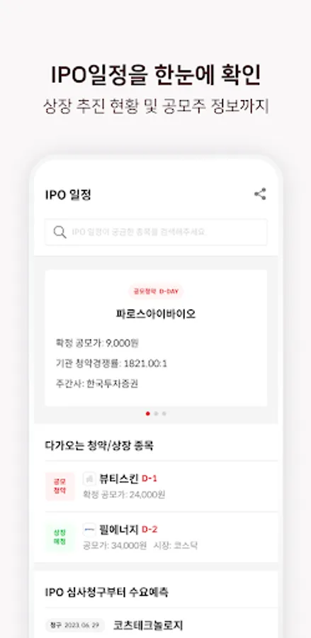 You can check the IPO schedule at a glance. Conveniently check the information required to subscribe to the public offering.
