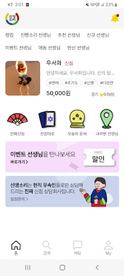 Shinmyeongsori is a representative application that provides direct counseling from current shamans.