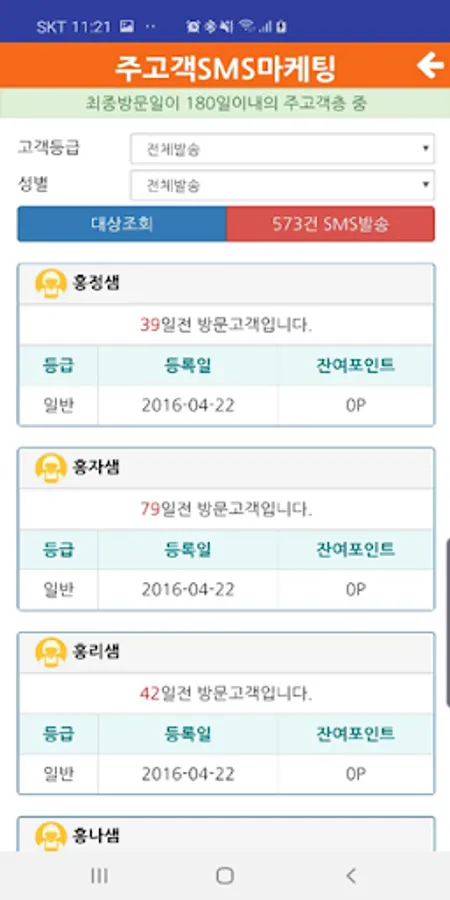 실시간SMS, 예약확인 SNS, 주객층을 위한 SMS를 보내실 수 있어