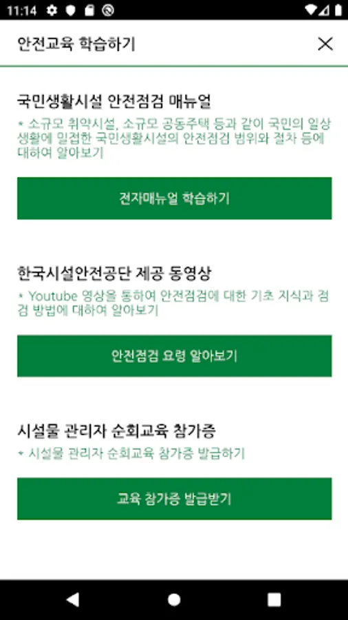 Third, “Learning for Safety Education” is included so that you can view video data and manual contents provided by the Korea Facility Safety Authority without having to separately search for learning materials related to safety inspection.