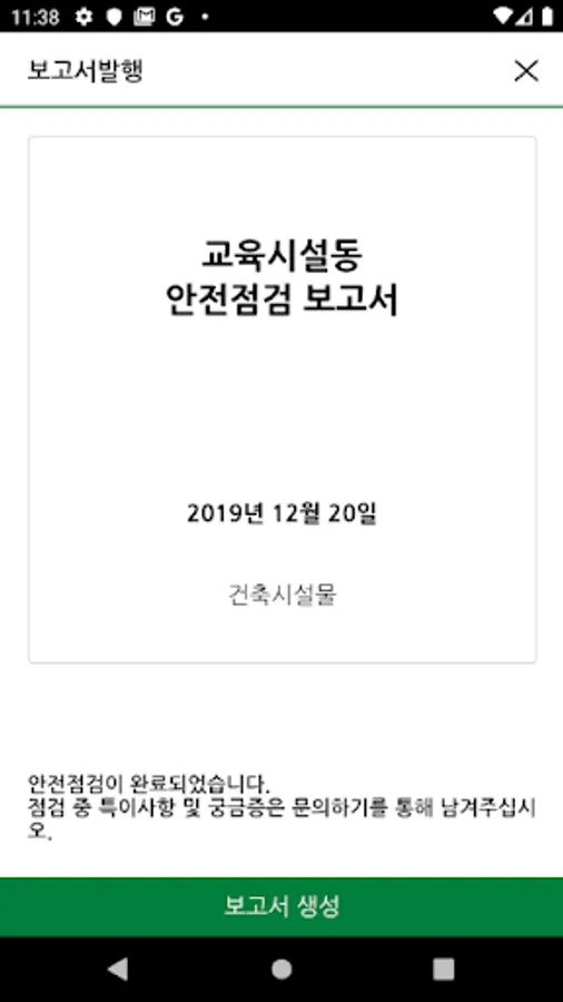 Second, “conduct safety inspection” allows users to check the condition of facilities while directly entering content, taking pictures, and checking items. Anyone who enjoys exchanging messages and taking pictures with a smartphone can generate a self-safety inspection result report.