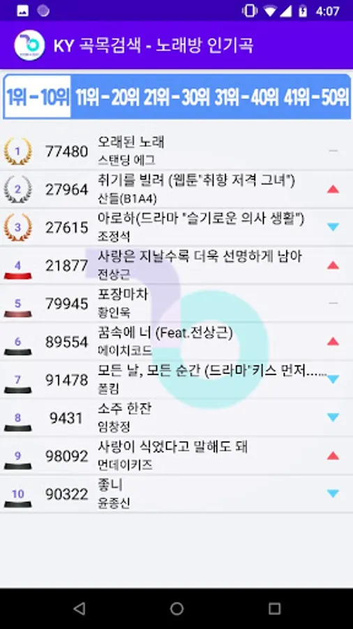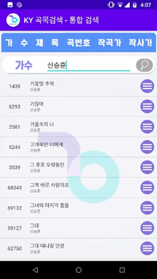 From the menu of "New Songs of the Day", "Karaoke Popular Songs", "Integrated Search", and "Popular Songs by Genre"