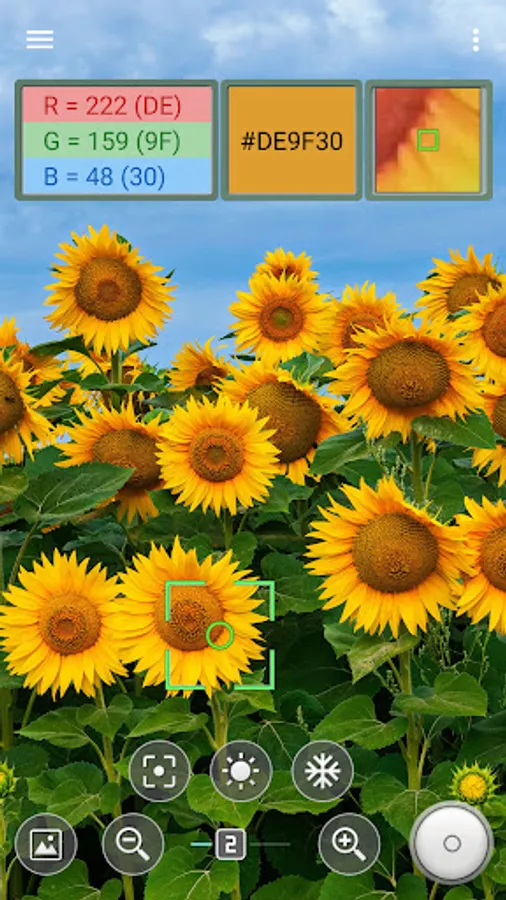 This colorimeter app helps to identify a RGB color from a specific point on the camera screen.