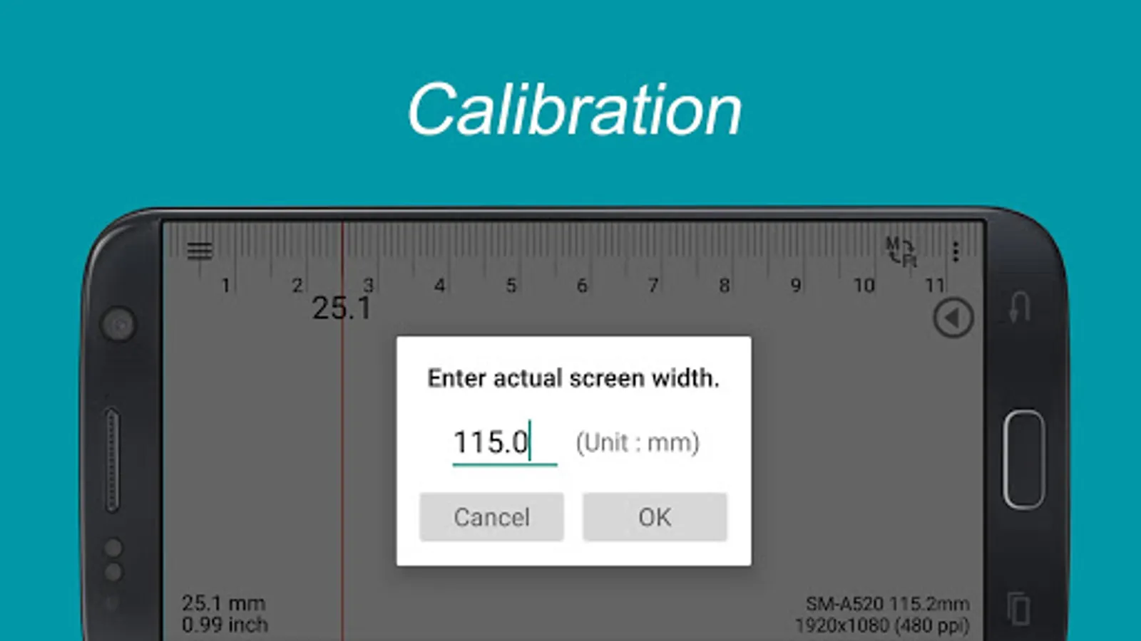 I calibrated the app on a lot of Android devices. If it is not accurate, you can enter the actual width with [Calibration] menu.