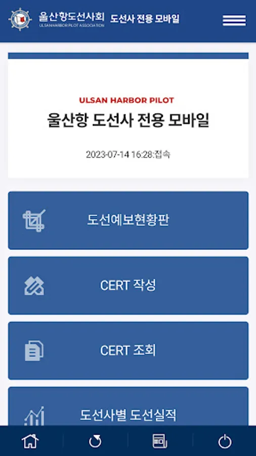You can use the functions of the homepage as it is, such as creating a certi, inquiry, and checking the pilotage fee.