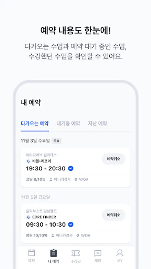 It is the No. 1 reservation management service, hifive, which is used in various exercise centers such as the Pilates Association, CrossFit Association, and chain gym with the largest number of branches in Korea. We will help all members easily re-register from the first reservation.