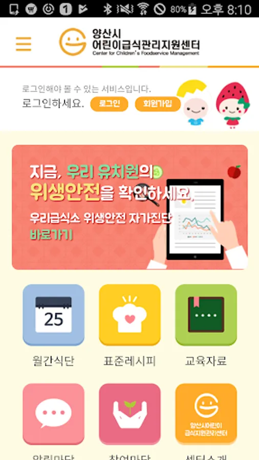 It provides information as an app of the Children's Meals Management Support Center in Yangsan City.