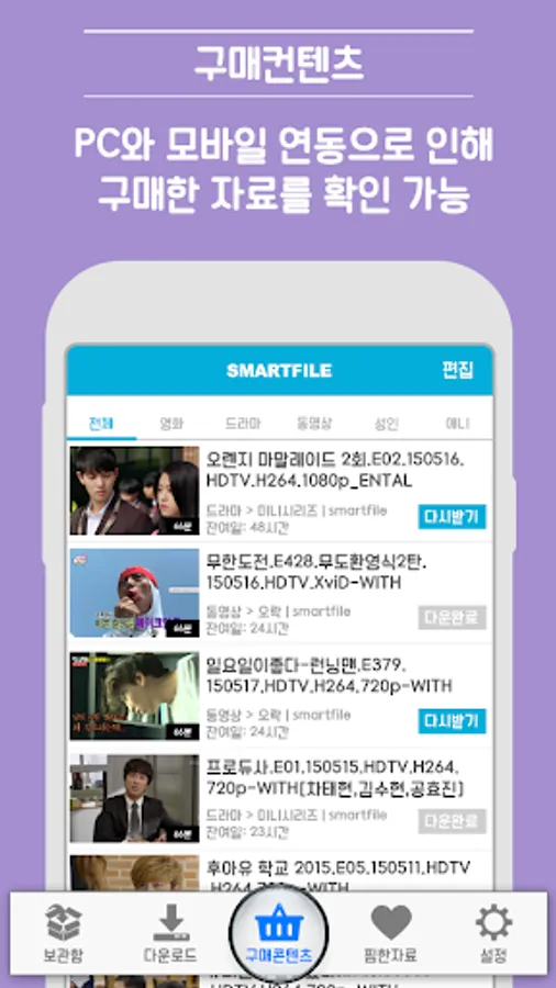 ※ downloaded video can be watched without buffering, regardless of the environment.