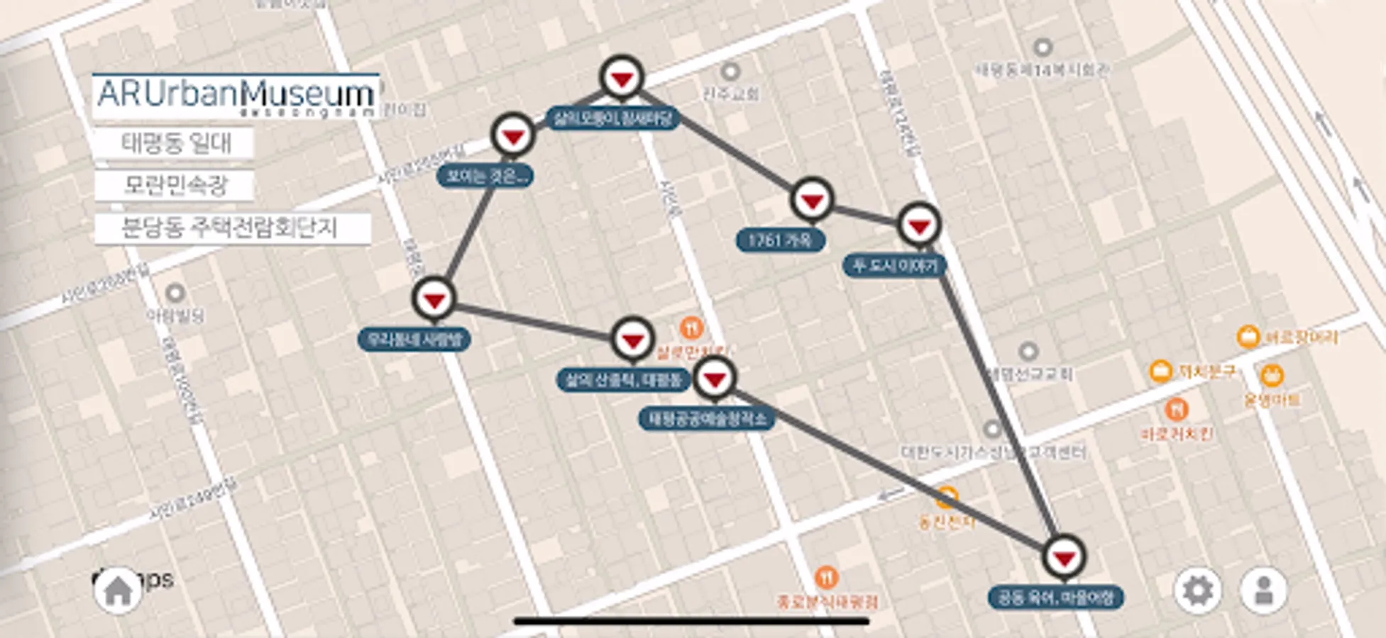AR Urban Museum is a location-based virtual museum that combines historical and present-day Seongnam with new augmented reality technology focusing in a spatial approach.