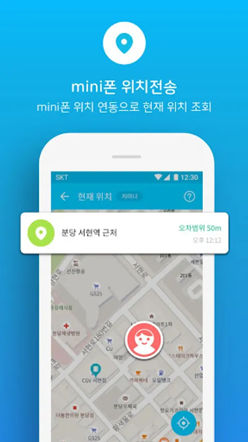 • Try using the location service in conjunction with your child's mini phone. You can check your child's current location and location history.
