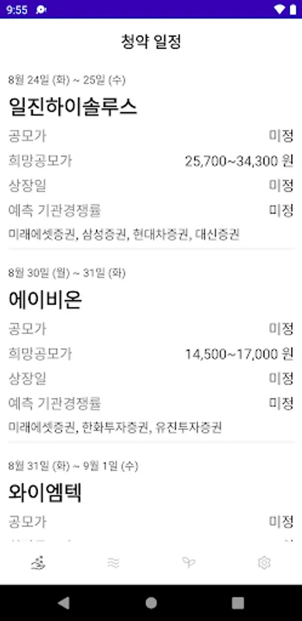 For stocks scheduled to be listed, the listing date, offering price, and competition rate are shown for stocks scheduled to be listed after the subscription is completed.
