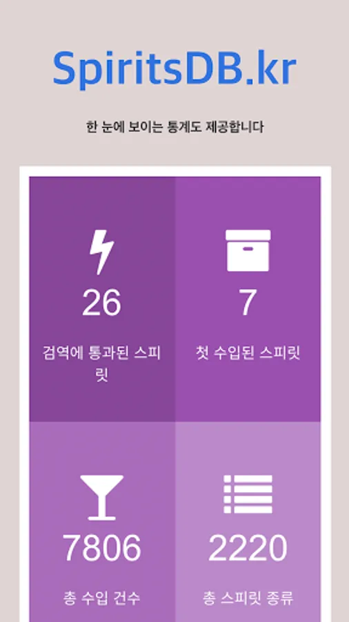 Spirit DB is an application that provides information about whiskey, cognac, and brandy imported and distributed in Korea.