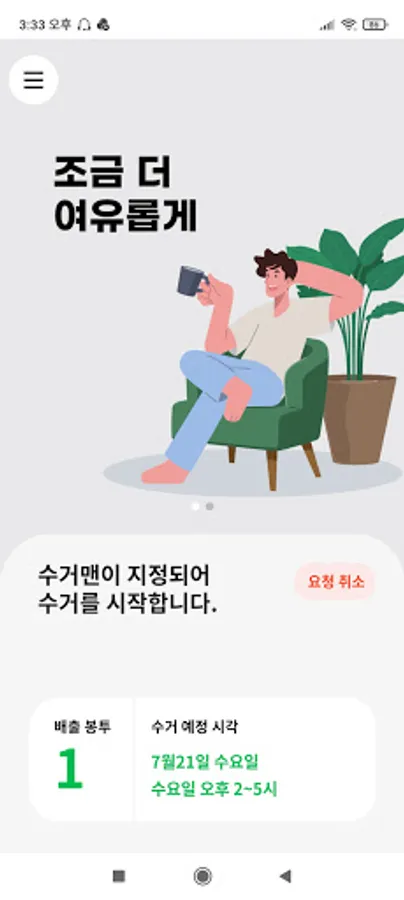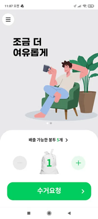 There is no need to take the garbage bag to the garbage collection point and separate it. On the day of separate collection, put out a separate collection bag and a volume-based garbage bag in front of the entrance, and simply make a 'request for collection', and the collector will collect it non-face-to-face.