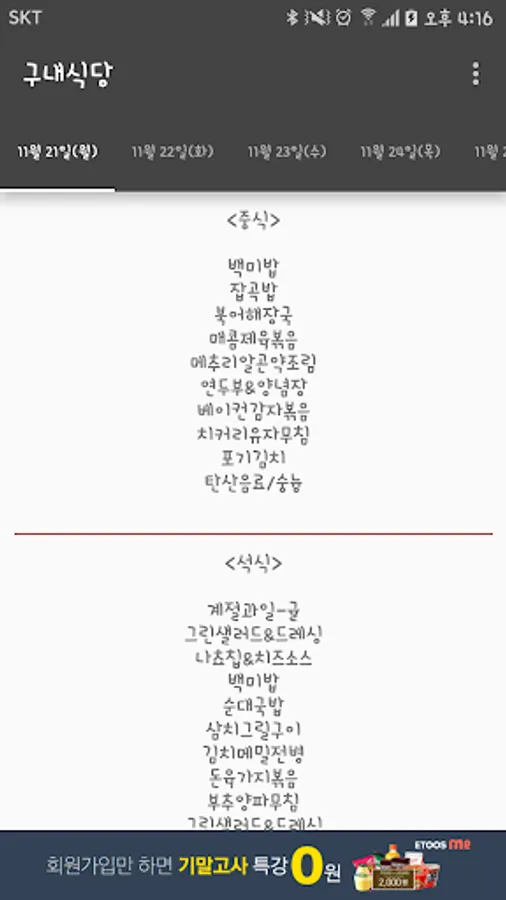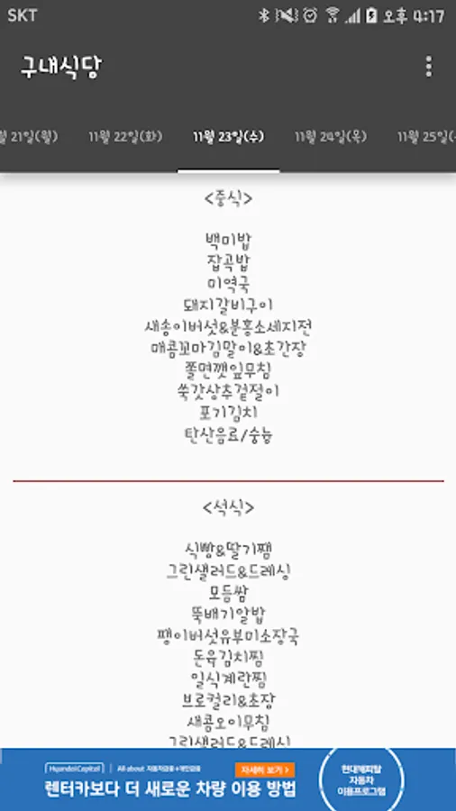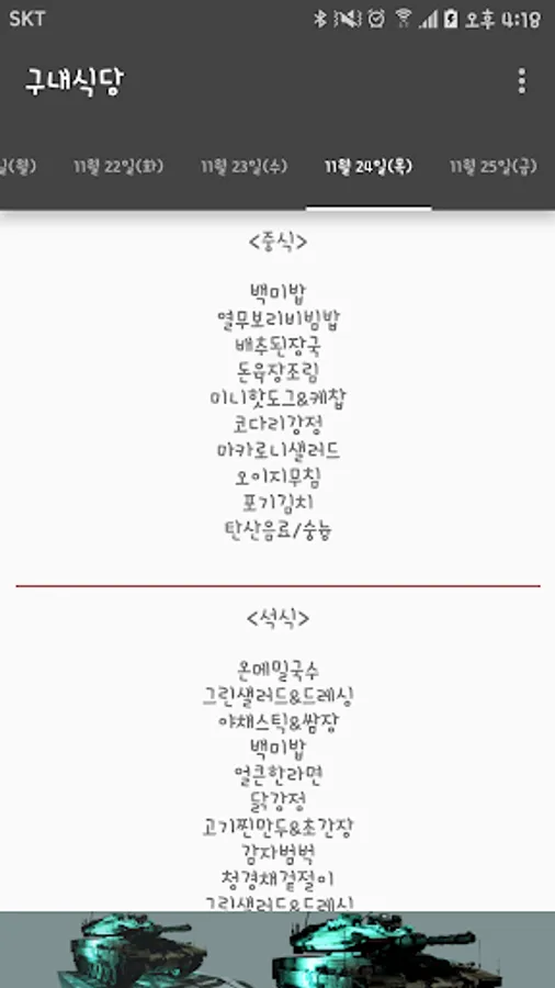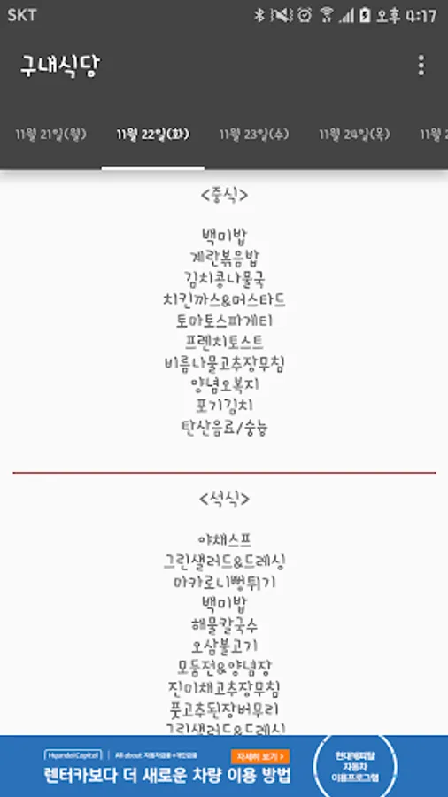 Restaurant menus and other inquiries, please contact directly to the cafeteria.