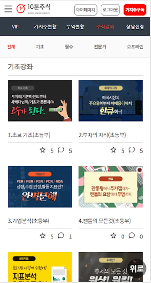 주식 입문부터 전문가 과정까지~!! 동영상 강의로 해결하세요.
