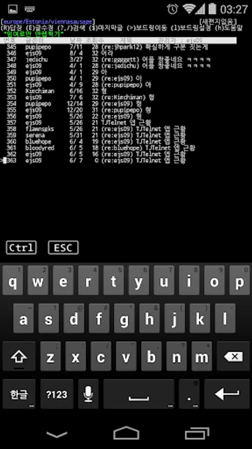 A simple telnet client application which supports ANSI and CP949 (EUC-KR) encoding. Ctrl and ESC key is also provided.