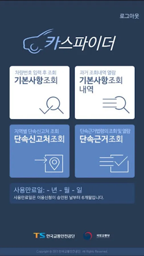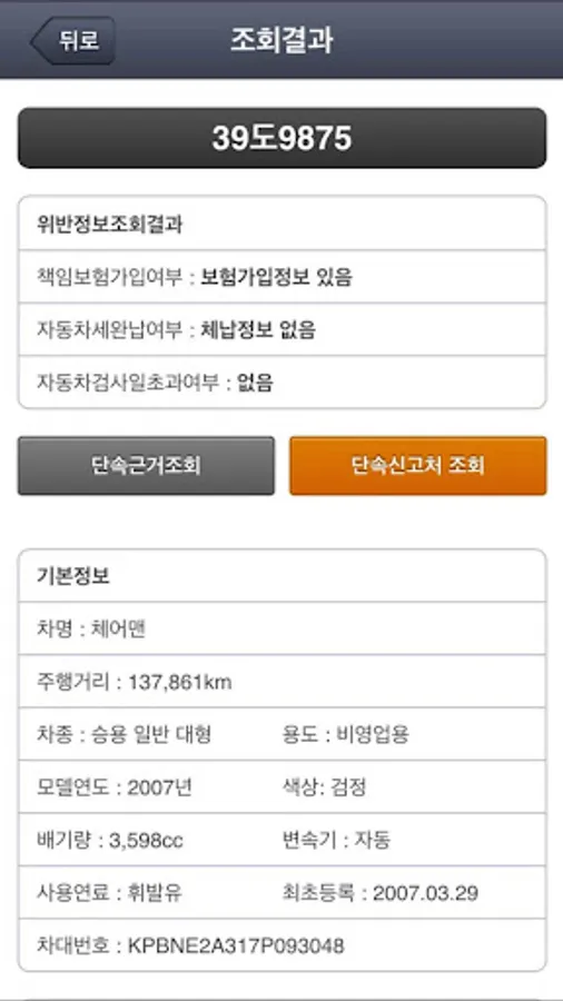 This app provides a service to search basic information and violation information of automobile with app for civil servants for crackdown on illegal cars.